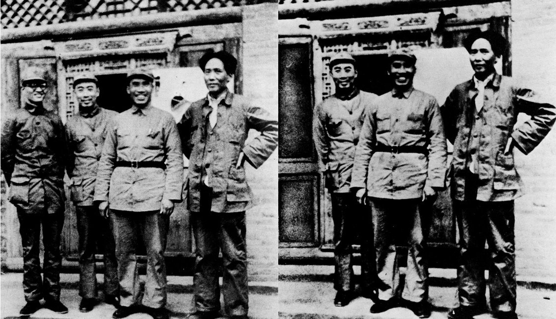 Цин Бансян, по-известен с псевдонима Бо Гу, генерален секретар на Китайската комунистическа партия за около 3 години, имал огромна власт под началството на Мао Дзедун. Но след „сериозни частични политически грешки” бива свален от поста и заменен от Джан Уентян през 1935 г. Има спорове по въпроса в какво точно се състои „политическата грешка”, но очевидно тя е била причината бившият партиен лидер да бъде отстранен от тази снимка.