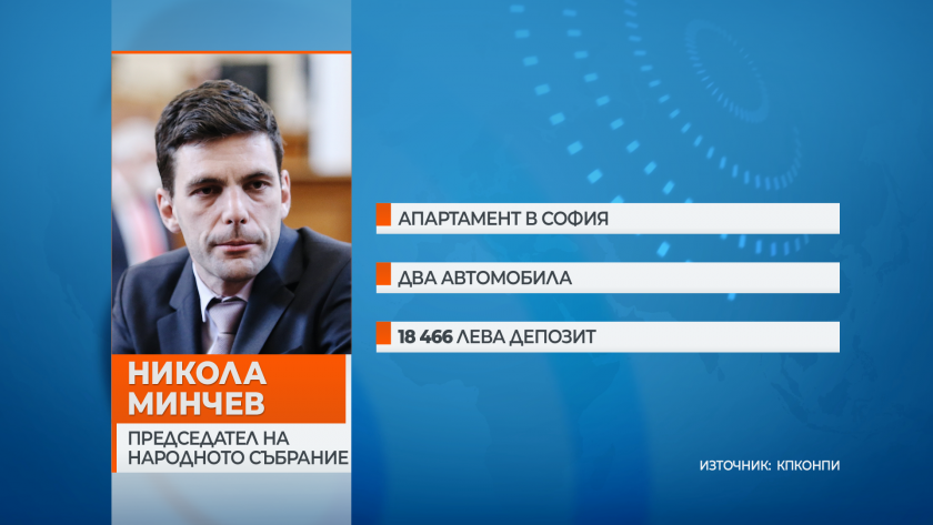 Председателят на Народното събрание Никола Минчев притежава апартамент в София, два автомобила и 18466 лева депозит.